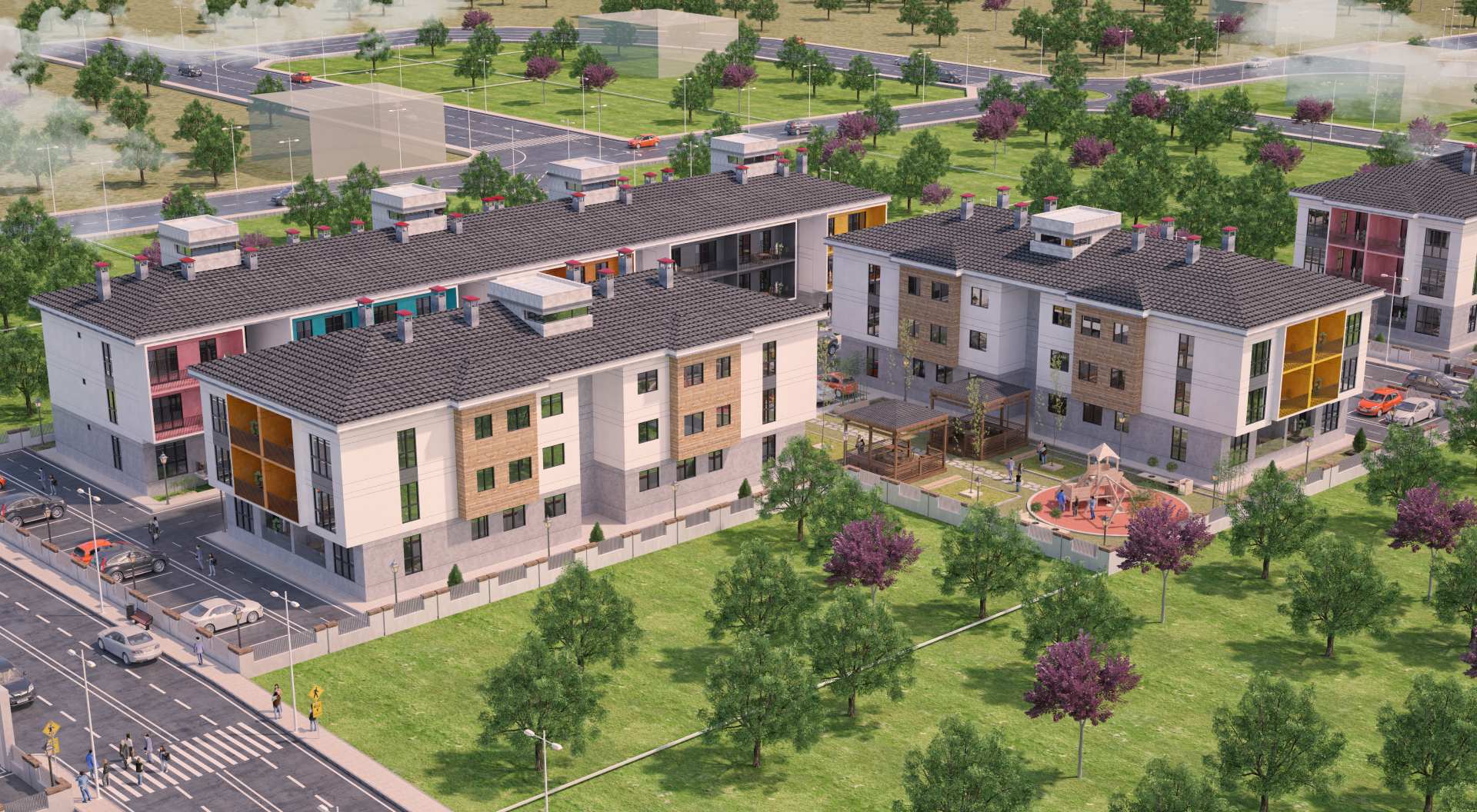 - Binaların dış cephesinde özel yalıtımlı mantolama sistemi kullanılacaktır.