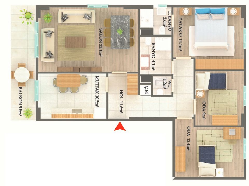 - Projemizde dairelere özel açık otopark alanı bulunmaktadır.
