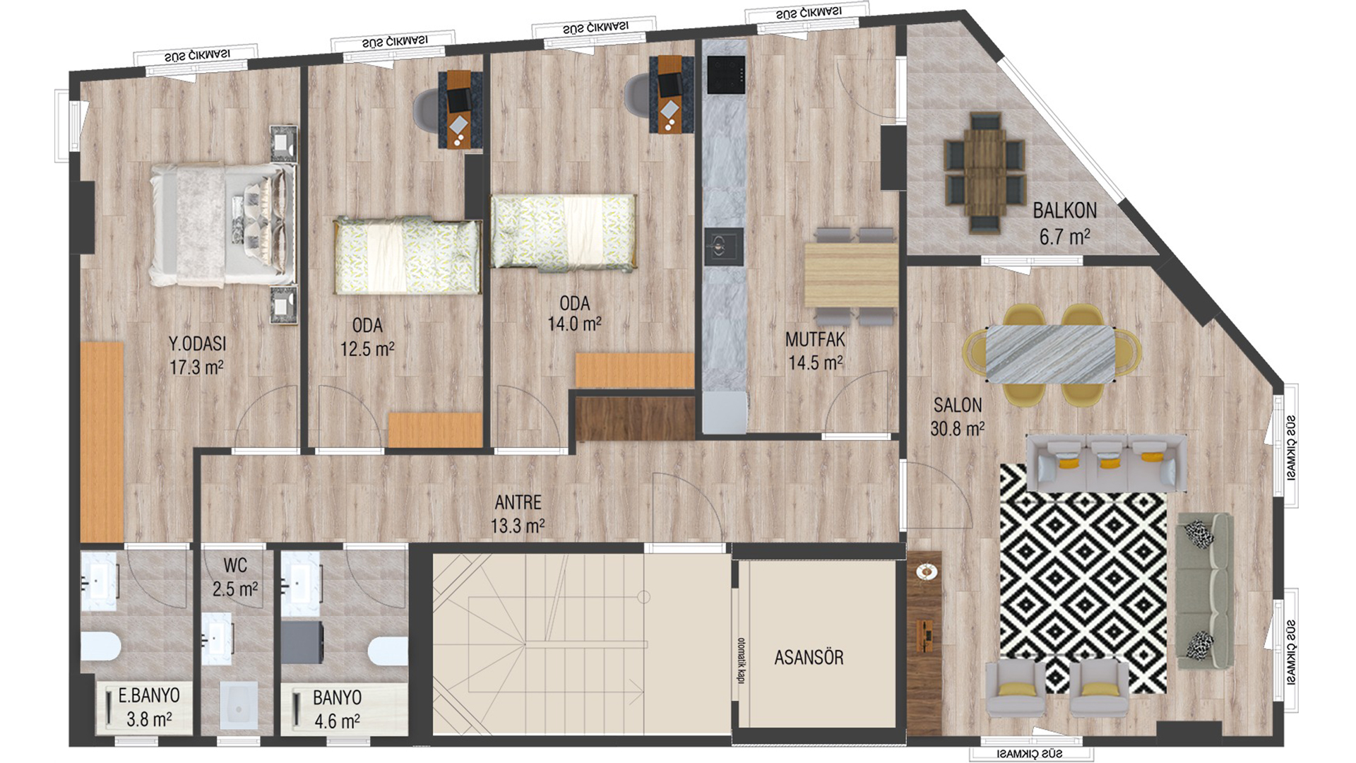 4 katlı bir binada kat planı tek daire olarak dizayn edilmiş projemizin en alt katında ise ihtiyaçlarınızı karşılamanız için 2 adet dükkan bulunuyor. Satışlarını tamamladığımız projemizde yaşam, mutluluk yayarak sürüyor.